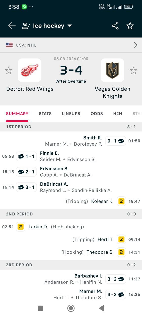 With a 2 minutes penalty in OT