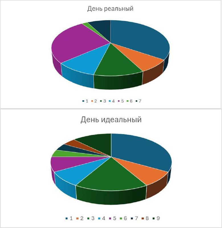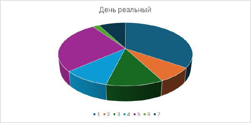 1. Реальное расписание: зафиксируйте свой среднестатистический день, отметив все занятия и время на сон. Важно учитывать привычки, ежедневные рутины и реальные временные затраты, в общем ВСЁ.