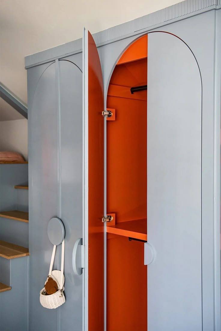 [ШВЕД Inspiration] Hidden Color В этой рубрике мы делимся тем, что формирует нашу насмотренность: архитектурные детали, дизайнерские приемы, неожиданные решения. Hidden color — один из таких наблюдений. Это прием, который делает интерьер живым за счет неожиданного момента обнаружения. Его задача создавать ощущение живого пространства, где цвет появляется как маленькое открытие в обычном действии.
