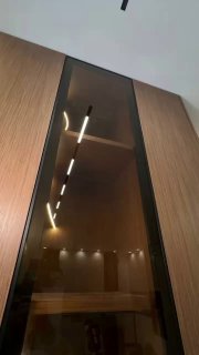 Корпус выполнен из МДФ со шпоном. Все видимые торцы заданы с единым направлением текстуры — это важно, чтобы изделие в реализации не «распадалось» визуально.