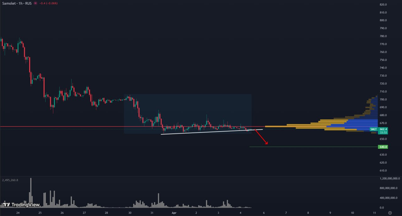 Актив SMLT находится в нисходящем тренде. Было замечено закрепление цены ниже уровня POC (Point of Control).