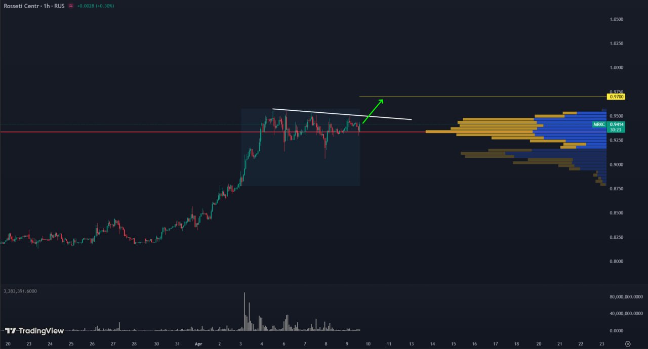 1h TF. Акции компании ММК (тикер MAGN) демонстрируют признаки позитивной динамики. Локальные минимумы поднимаются, что указывает на переход к восходящему тренду. Цена отреагировала на зеркальный уровень, показывая возможный разворот.
