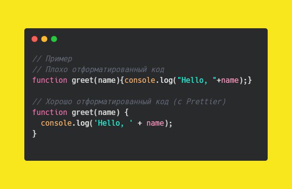 Prettier автоматически форматирует код, улучшая его читаемость и поддерживаемость.