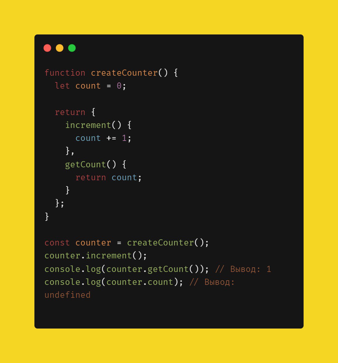 Использование замыканий для создания приватных переменных