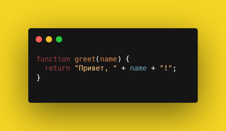 Объявление функции Эта функция принимает аргумент name и возвращает строку приветствия. #функции