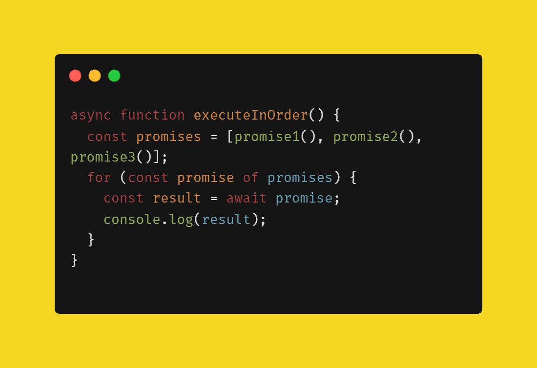 Ожидание выполнения промисов в определенной последовательности Здесь мы обеспечиваем выполнение промисов в порядке итерации по массиву promises. #промисы