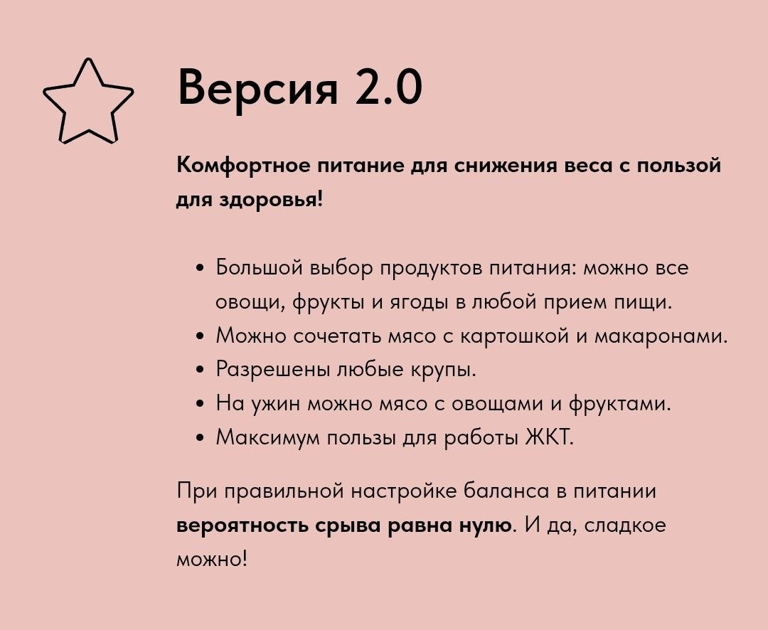 🟢 Вам не нужно отказываться от сладкого, мучного или жирного. На Системе Минус 60 можно есть всё, и худеть без чувства голода и вреда для здоровья. Вы можете выбрать один из трех вариантов – ❗️ классика, версия 2.0 или ПРО+, и создать идеальный для вас стиль питания.