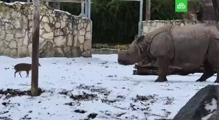 Сообщается, что в зоопарке польского города Вроцлав произошла эпичная битва карликового оленя и носорога