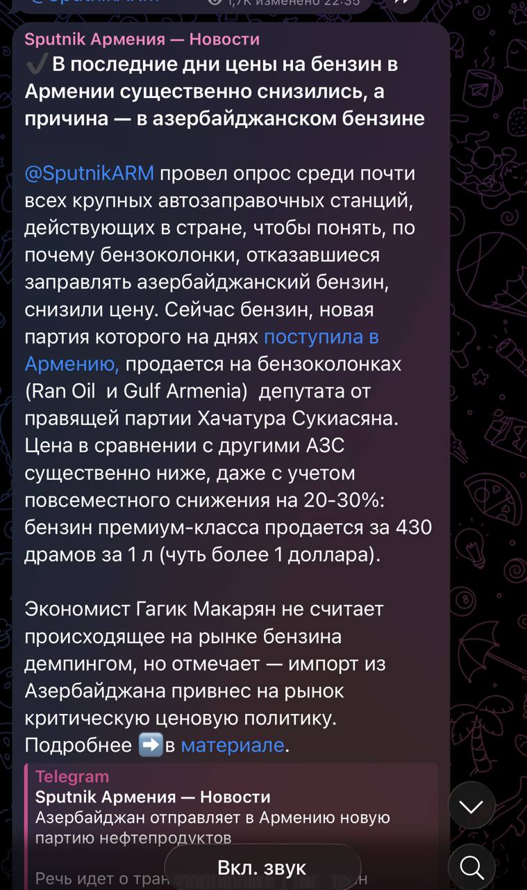 Смотрите, как красиво всё сделали. Просто идеально! За последние несколько лет, пока правил Пашинян, бензин начал дорожать постепенно, ни с того ни с сего. Просто по 10–20 драм поднимали раз в месяц. Стоил 350 драм тогда, года 3–4 назад, сейчас стоит 520 — 95-й.