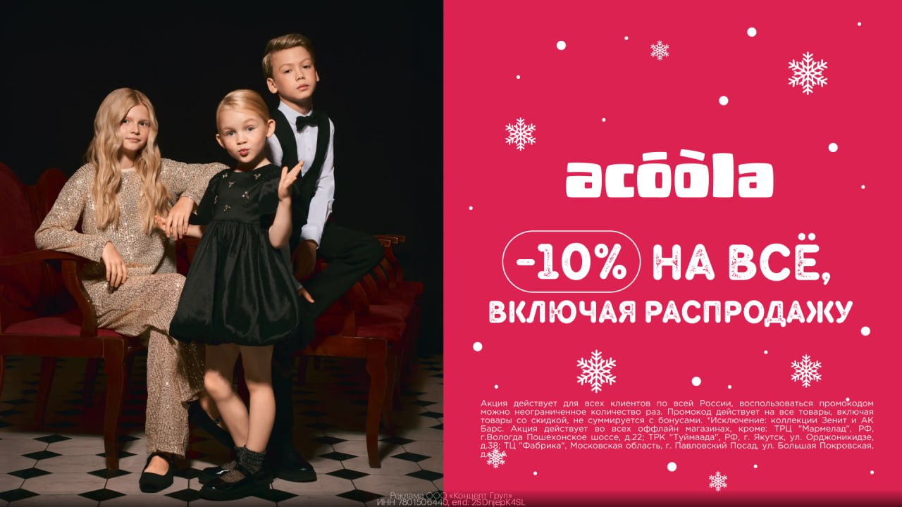 👶 В ACOOLA дополнительная cкидка 10% по промокоду на ВСЁ, включая распродажу!