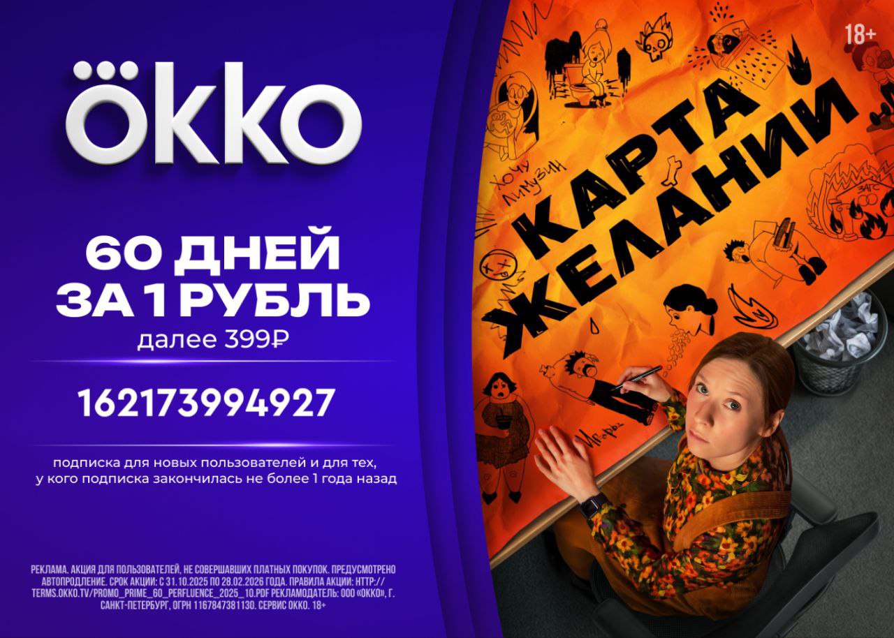 Смотрите на Okko на 60 дней за 1 ₽ по промокоду 162173994927 , далее 399₽/мес