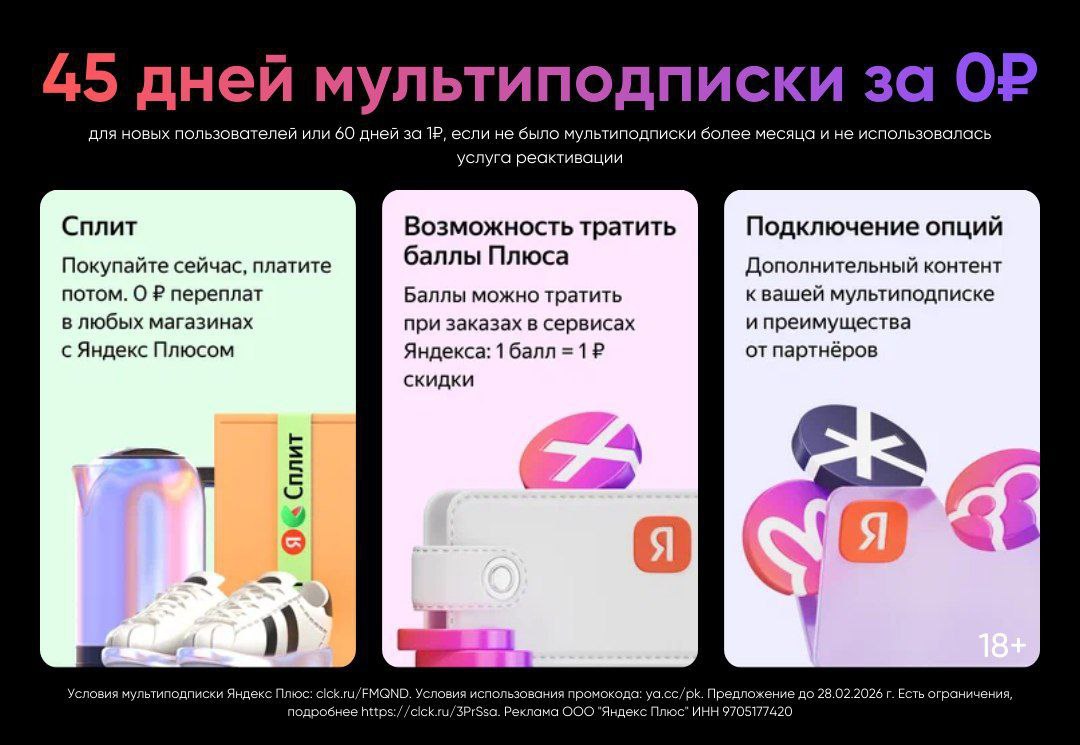 *Подписка на 60 дней за 1 ₽ для новых пользователей и для тех, у кого подписка закончилась не более 1 года назад