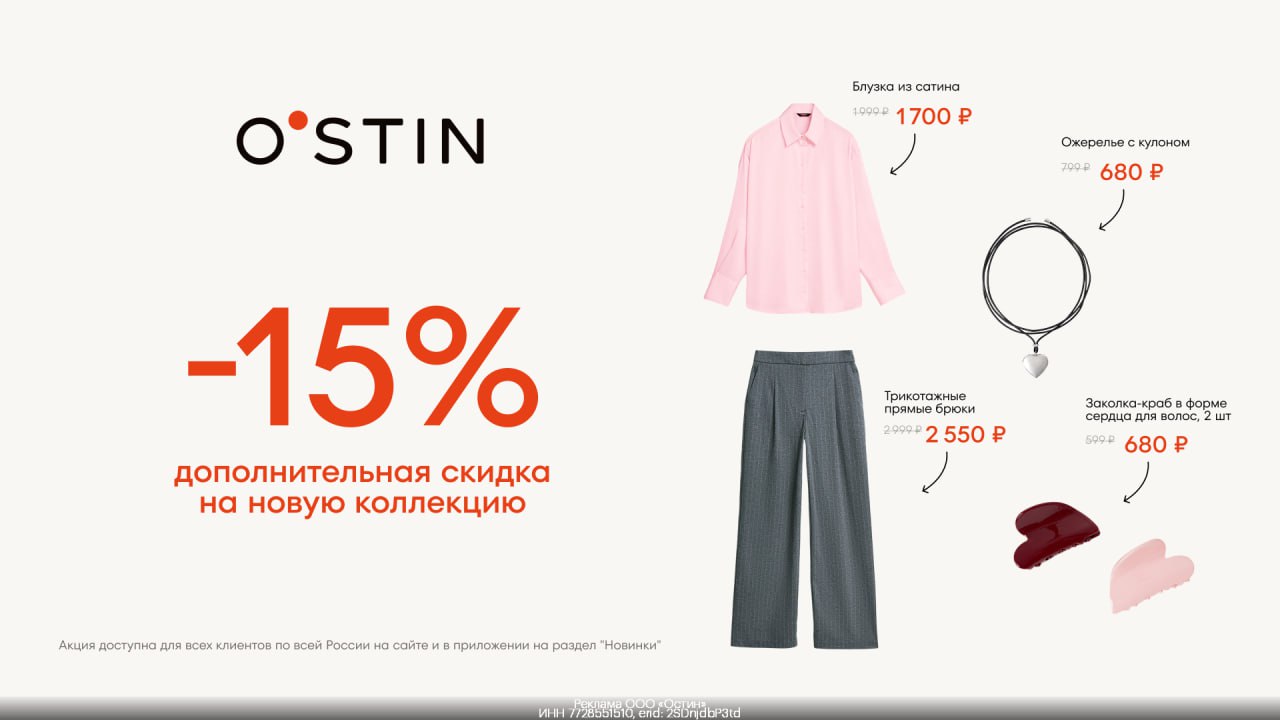 Промокод действует на женскую, мужскую и детскую одежду, не суммируется с другими акциями и скидками