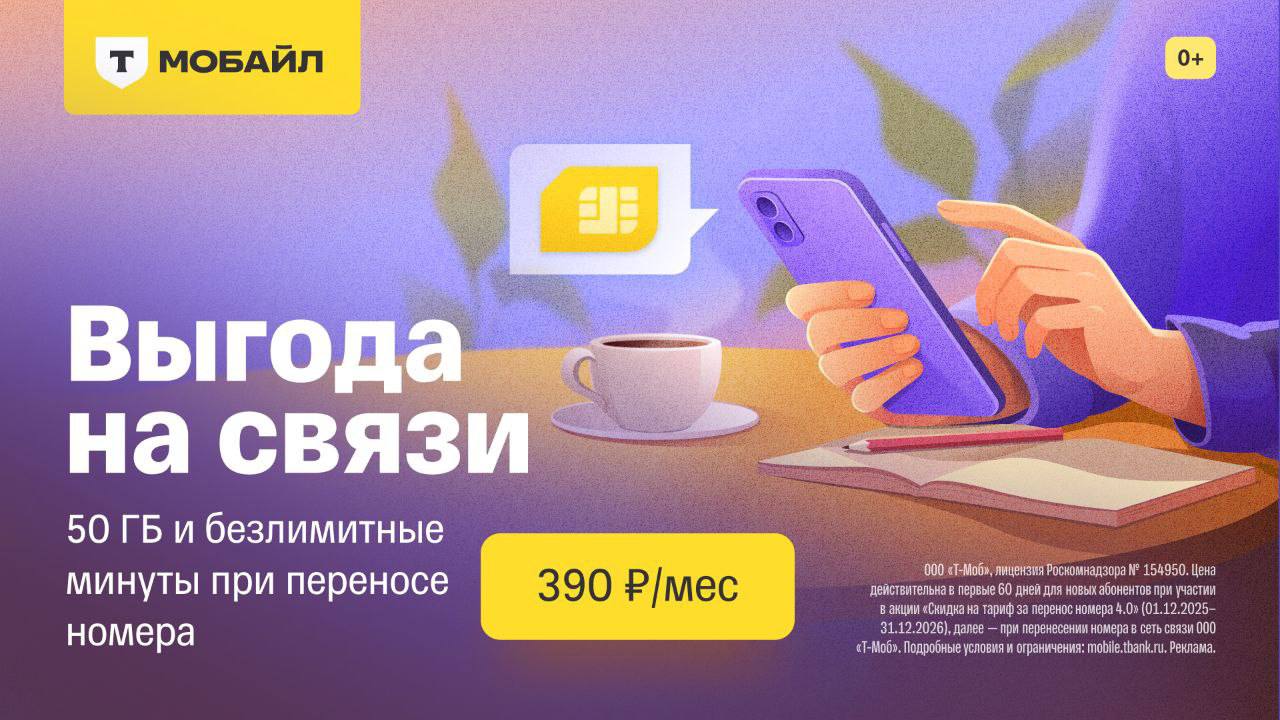 ООО "Т-Моб", лицензия Роскомнадзора 154950. Подробнее на mobile.tbank.ru. Реклама
