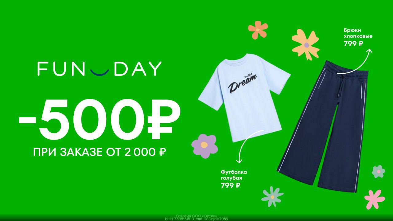 👚 Скидка 500₽ на покупку одежды и аксессуаров в FUNDAY