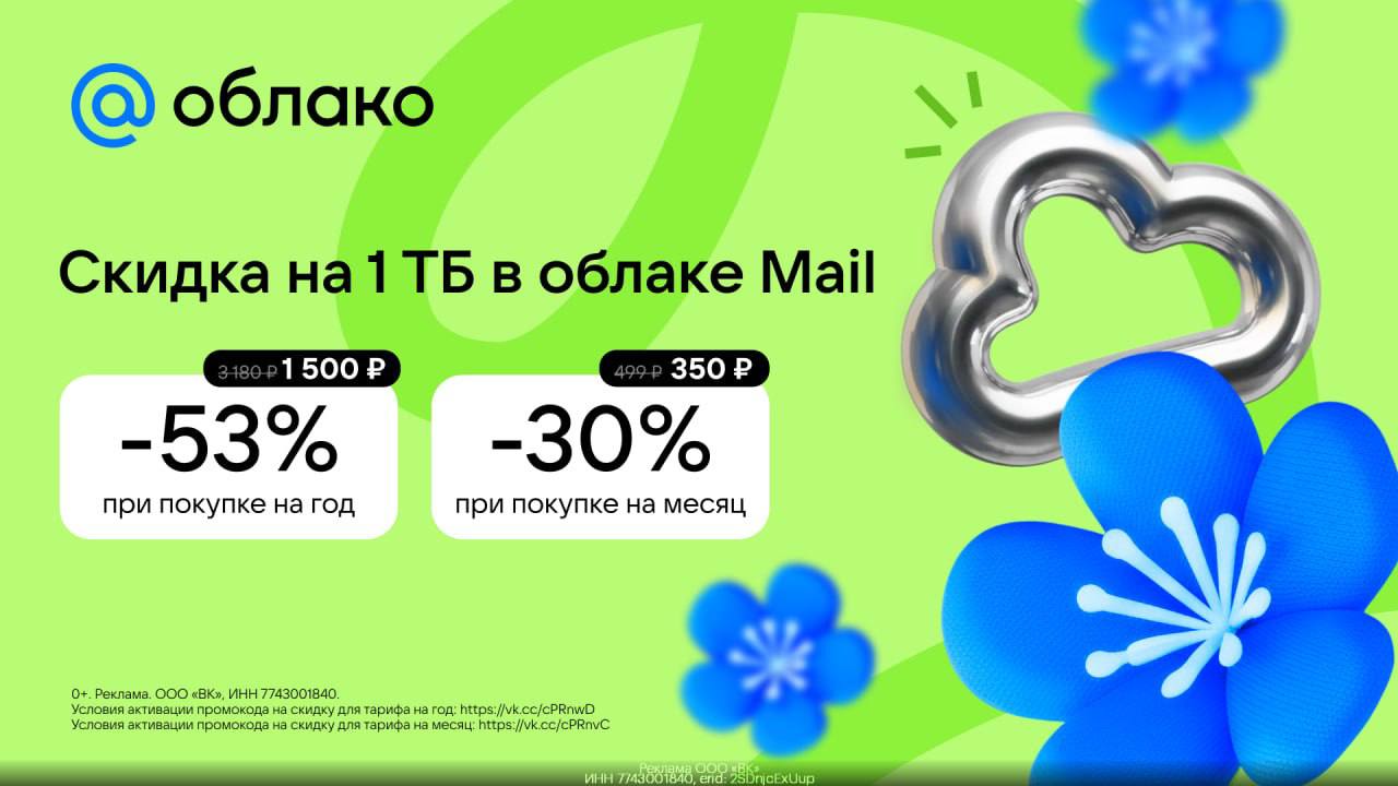 ☁️ Большие скидки на Облако Mail в подписке Mail Space