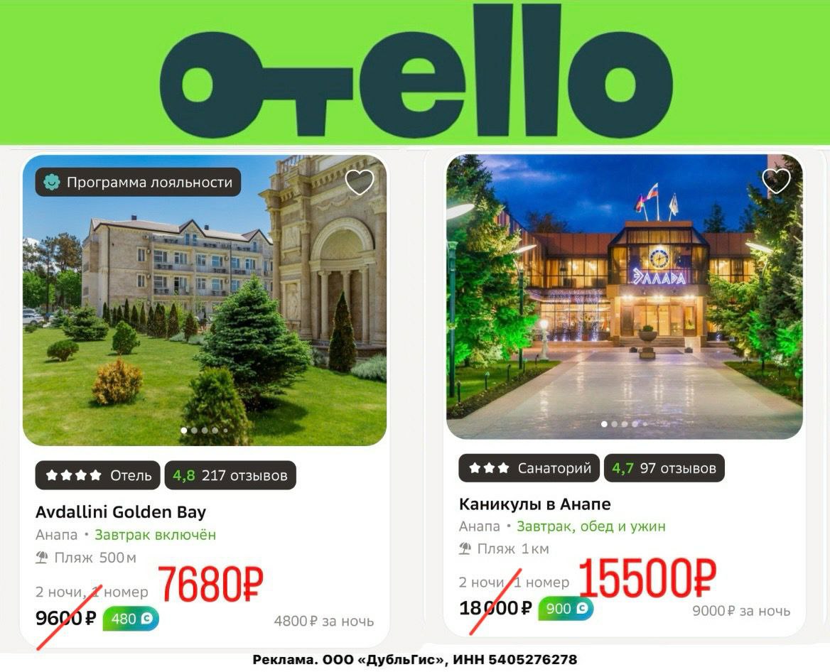 🤩🤩🤩🤩 2500₽ на бронь жилья от ОТЕЛЛО 🔑