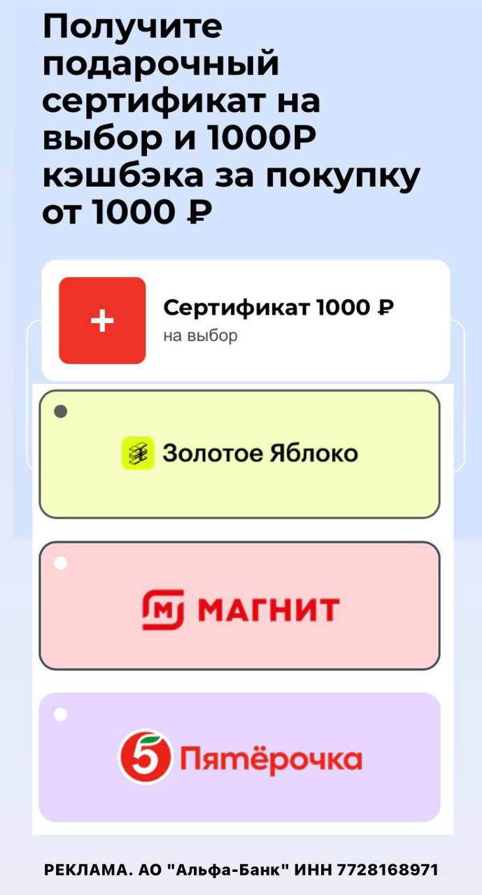 АКЦИЯ с сертификатом на 1000₽ + 1000₽ КЭШБЭК за покупки.