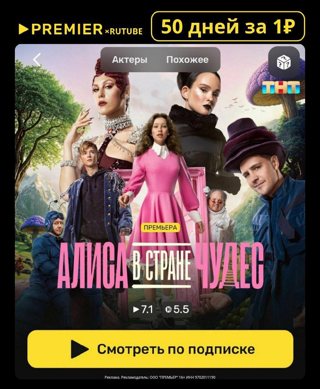 далее подписка стоит 399₽ в месяц Premier Rutube