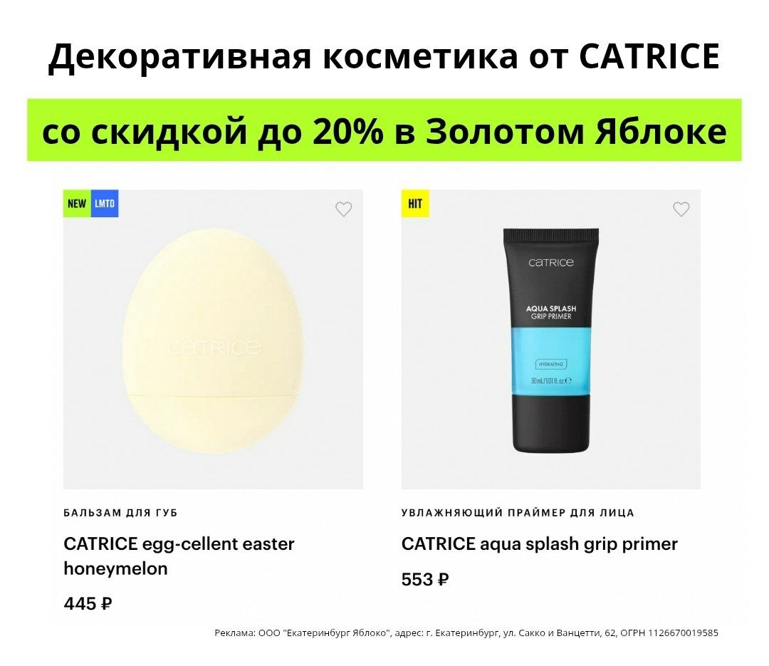 ♥️ Промокод не суммируется с акциями 3=2 и 2=1, не действует при покупке подарочных карт Золотого Яблока.