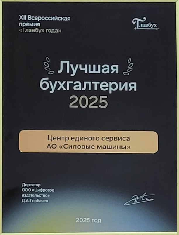 Центр единого сервиса АО «Силовые машины» стал победителем Всероссийской премии «Главбух года — 2025» в номинации «Лучшая бухгалтерия».