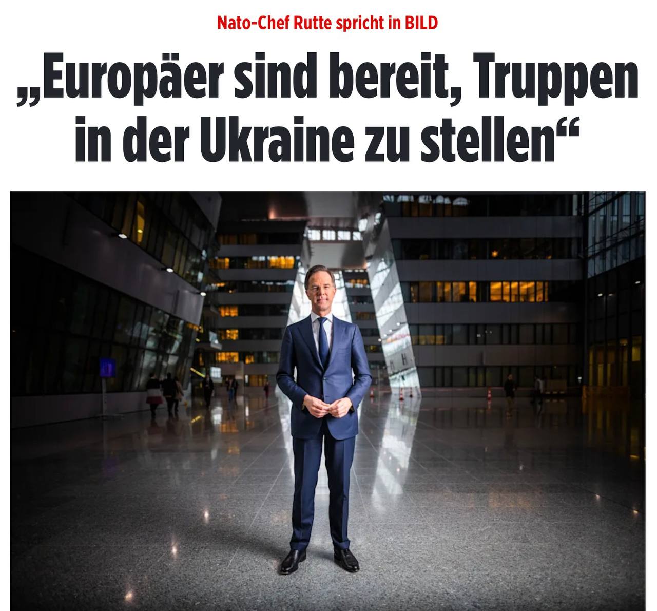 ⚡️Страны Европы готовы направить войска в Украину в случае нарушения Россией мирного соглашения, — генсек НАТО Рютте в интервью Bild.