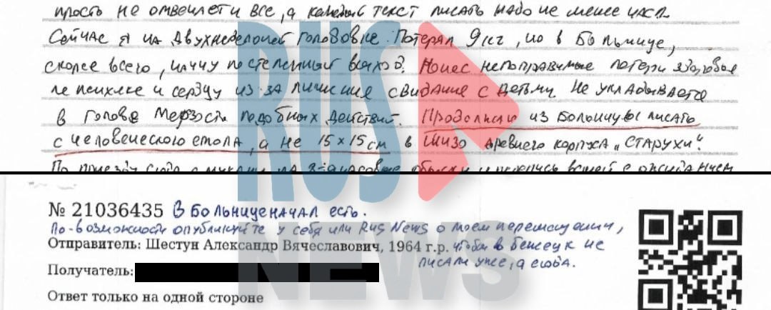 ⭕️В октябре 2024 года Александра Шестуна признали виновным в якобы нападении на сотрудника ФСИН и увеличили ему наказание с 15,5 лет до 17 лет колонии строгого режима. В январе этого года новый приговор оставили в силе.