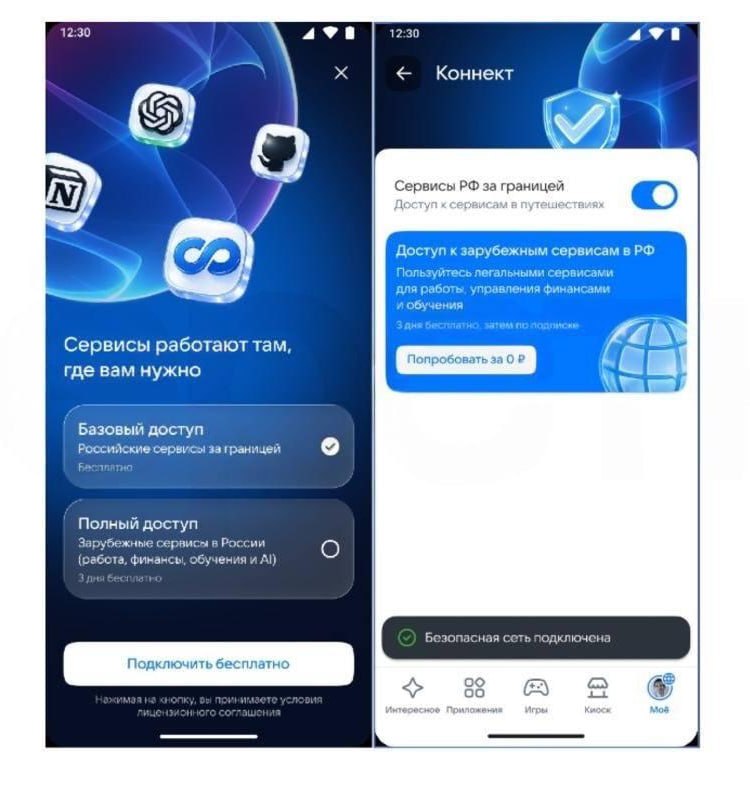 Будет два тарифа. Бесплатный позволит из-за границы заходить на Госуслуги и в российские банки. Платный предназначен для легального и безопасного доступа к нейросетям, рабочим инструментам и образовательным платформам.