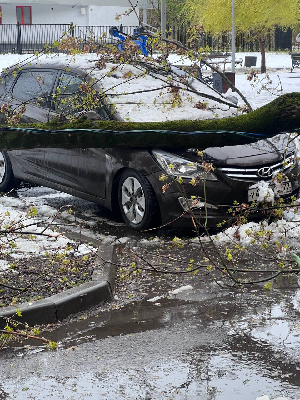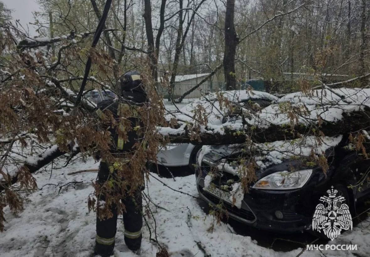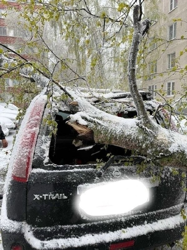 В Москве объявлен жёлтый уровень погодной опасности — он продлится до 28 апреля. В «Мострансе» сообщают о десятках упавших деревьев: ветки не выдерживают налипшего снега