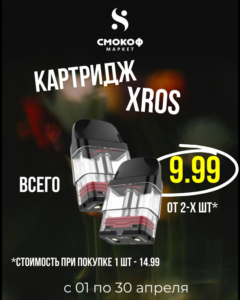 ⚡️С 1 по 30 апреля при покупке от 2-х картриджей Xros стоимость 1 шт 9,99 руб*