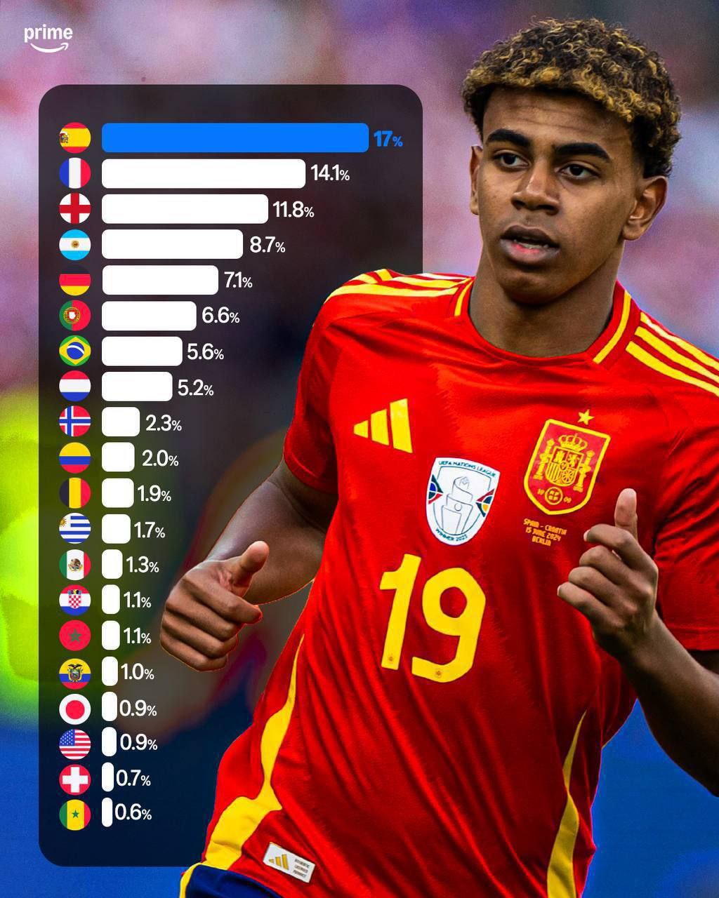 👀🌍 Шансы команд на победу на ЧМ 2026 года по версии Opta Согласны?🤔 😎 @lamineyamal