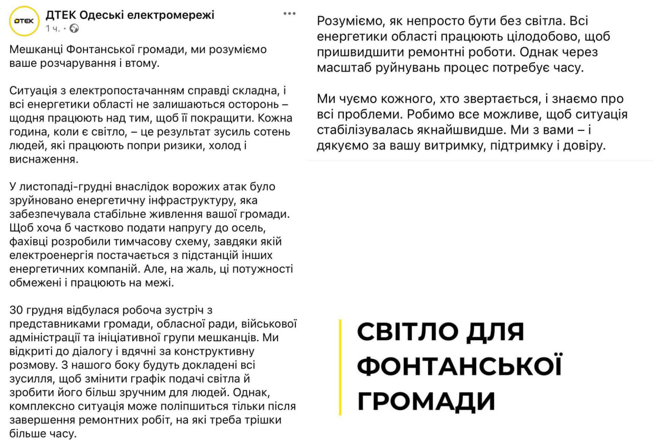 Причем ДТЭК даёт пространные ответы – мол, когда починим, тогда починим. С открытой датой.