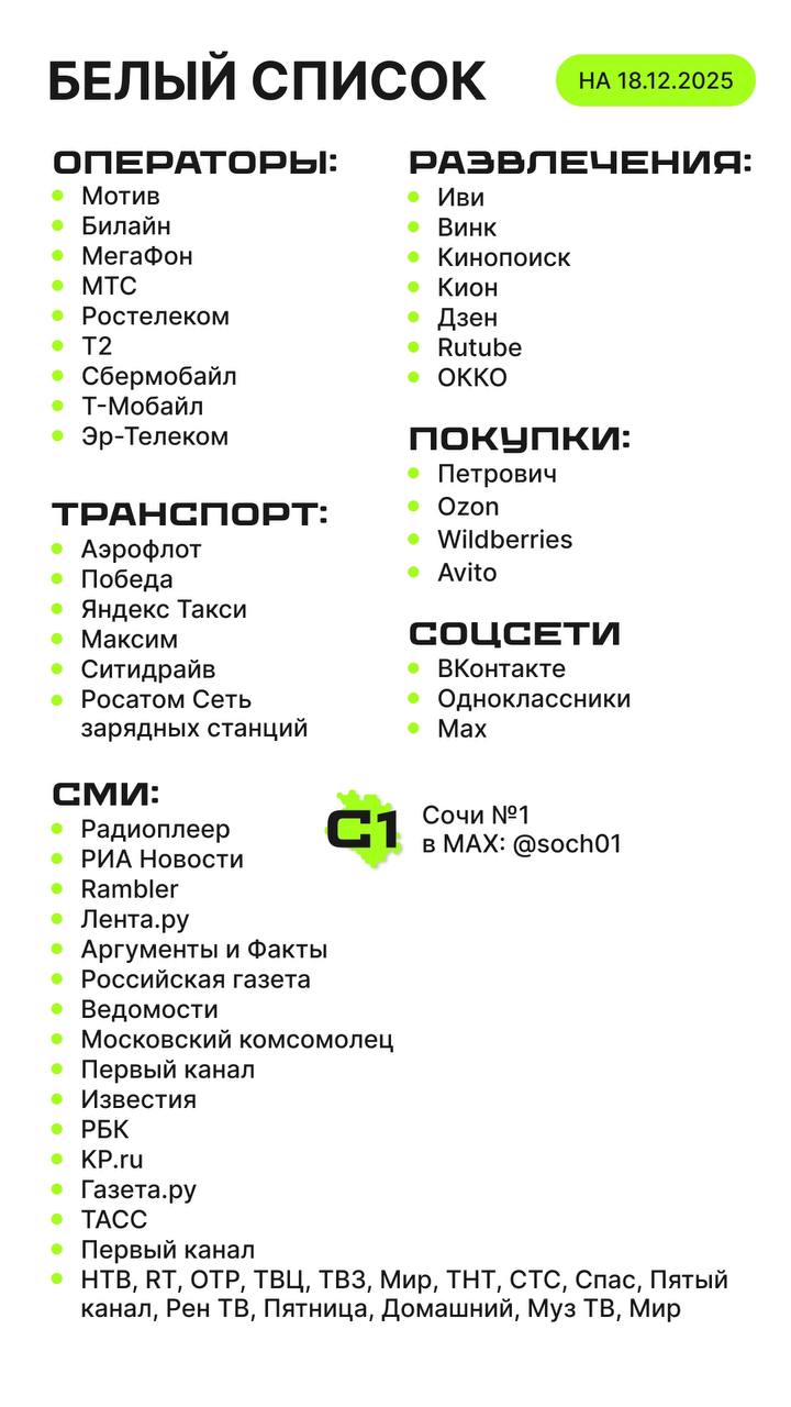 А чтобы не пропустить во время сбоев важные новости Сочи, подписывайтесь на наш резервный канал в MAX: https://max.ru/soch01