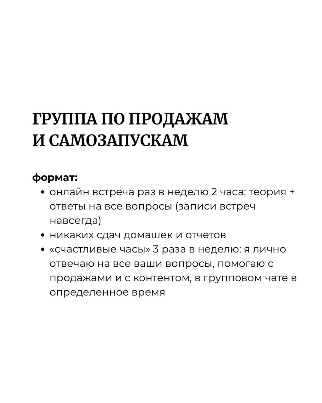 А самое главное, вы не просто учитесь продажам, а получаете проверенный инструмент, который позволит вам переходить на новый уровень жизни, клиентов, окружения и многого другого.