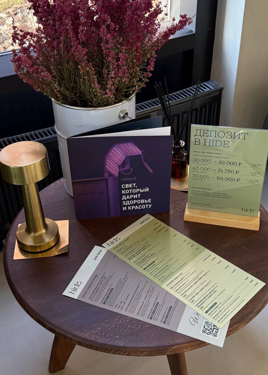 в Hide всё: от расслабляющих программ для тела и прессотерапии до безынъекционной косметологии.