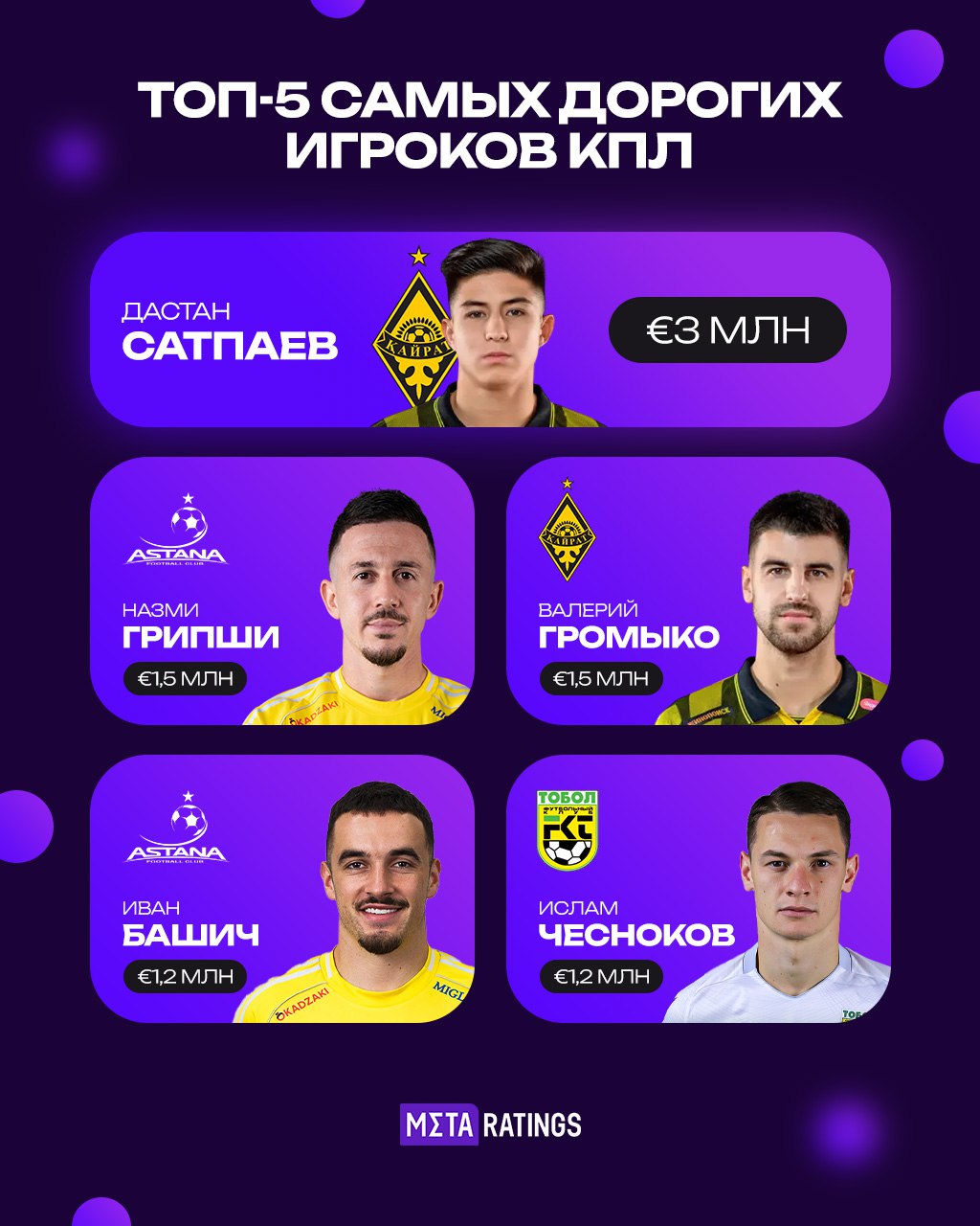 1️⃣ Дастан Сатпаев — €3,0 млн