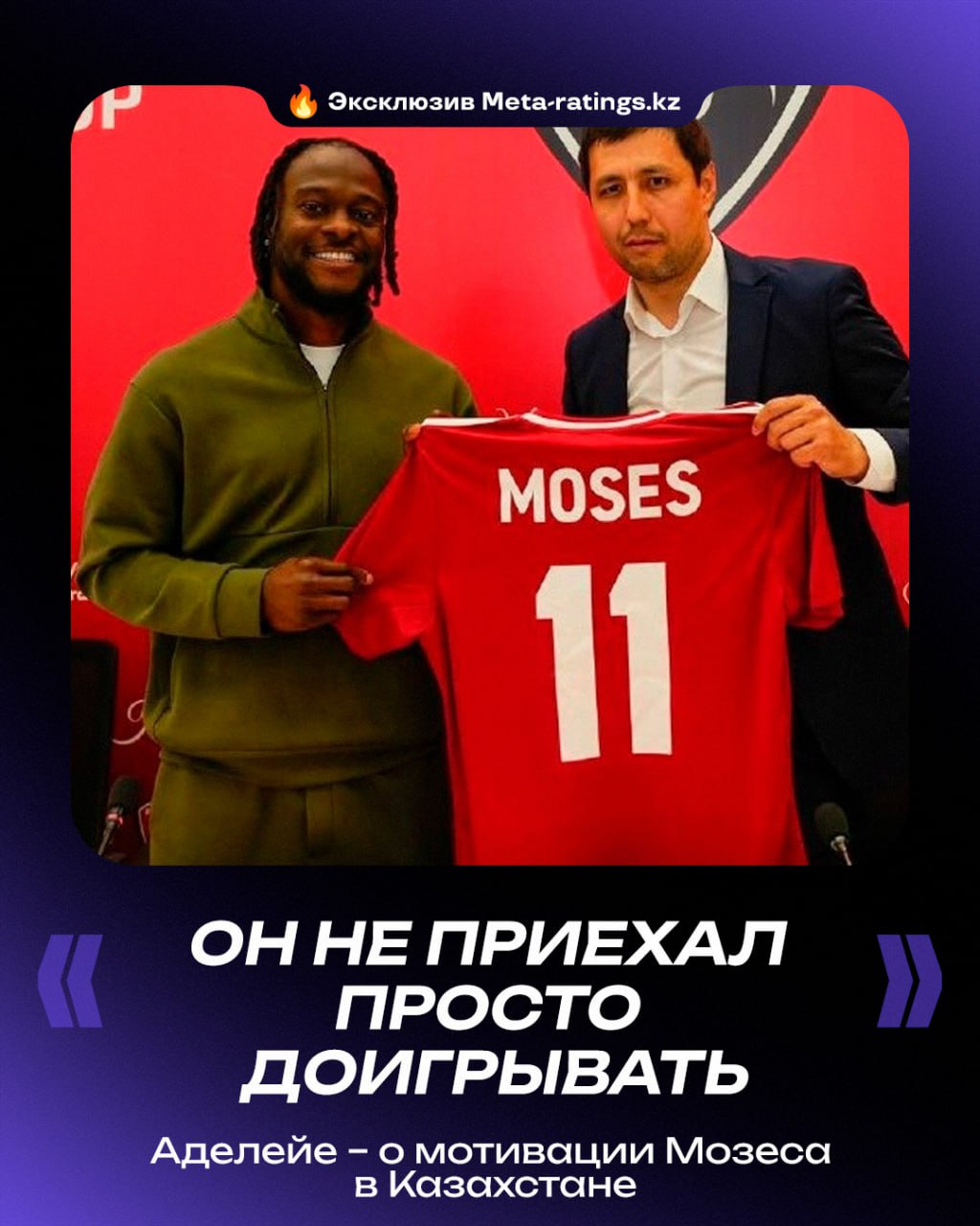 ⚽️ «Он не приехал просто доигрывать» — Аделейе о мотивации Мозеса в Казахстане