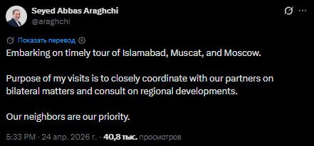 На прошлой неделе раскол вышел наружу. Глава МИД Ирана Аббас Арагчи объявил об открытии Ормузского пролива, но КСИР проигнорировал это заявление и публично атаковал министра.