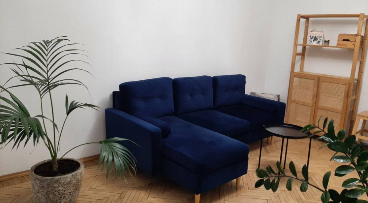 Холодильник • Стиральная машина • Кровать с икеевским матрасом 160/200, диван ортопедический бархатный синего цвета, шкаф, две кладовки, ванная, чтобы лежать и кайфовать, посудомойка, духовка, красивый золотой холодильник, микроволновка и все необходимое