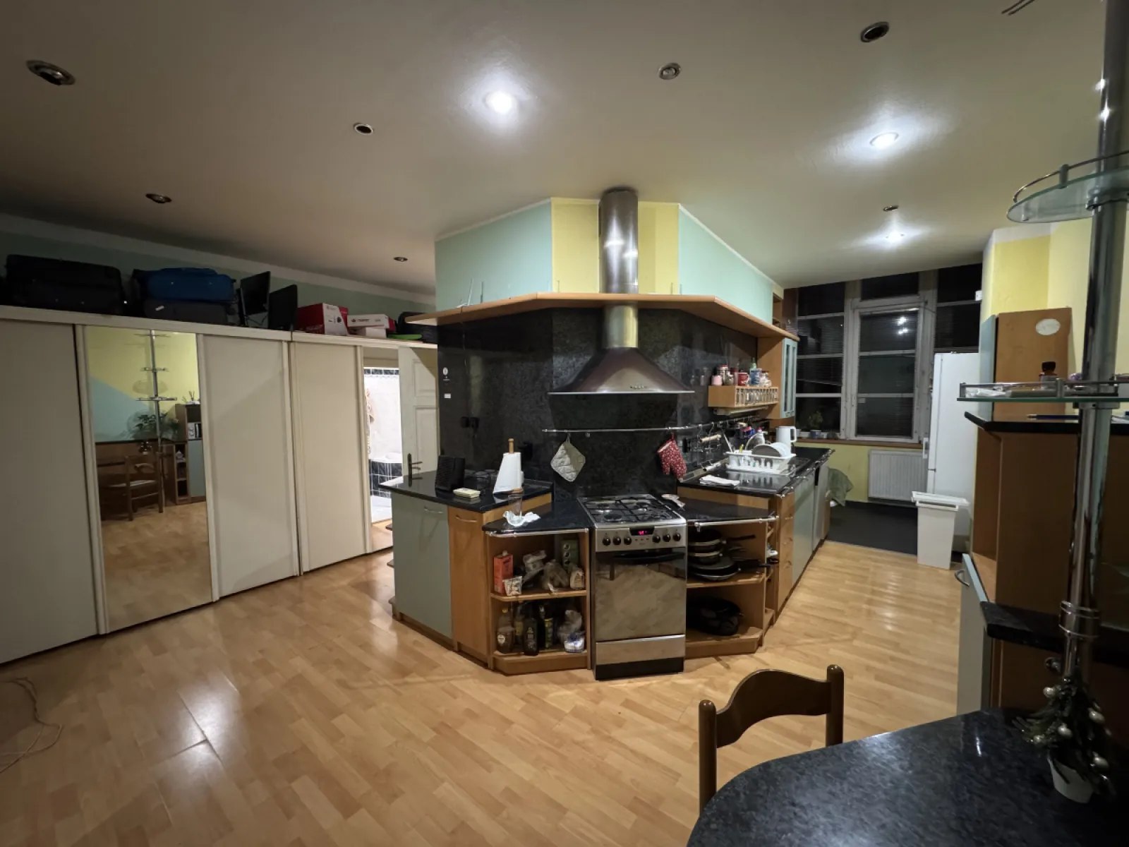Квартира полностью оборудована: холодильник, стиральная машина, посудомоечная машина, микроволновая печь, духовка, посуда, интернет и большая кухня с местом для хранения.