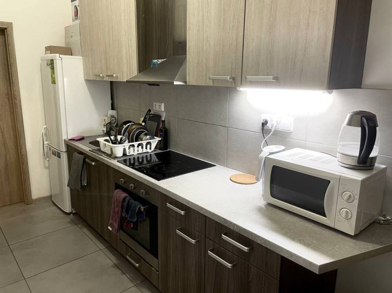 Квартира после нового ремонта, полностью укомплектована современной мебелью и техникой (стиральная машина духовой шкаф, микроволновка, варочная панель, холодильник, робот-пылесос, Smart TV, интернет).