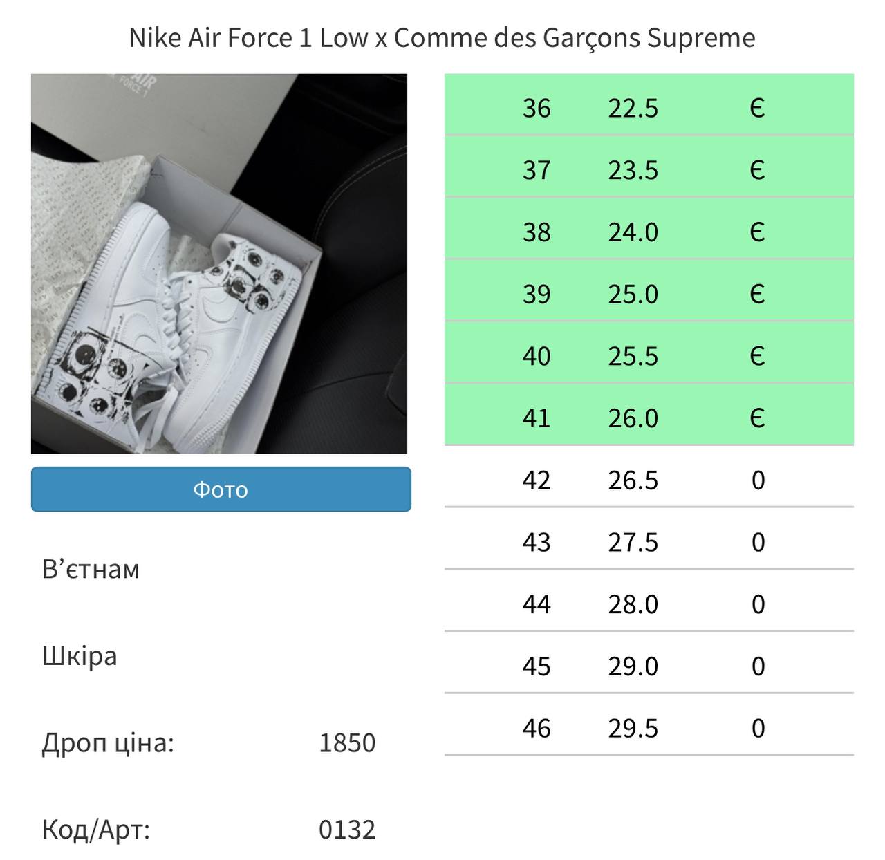 Nike Air Force 1 Low х Comme des Garçons Supreme