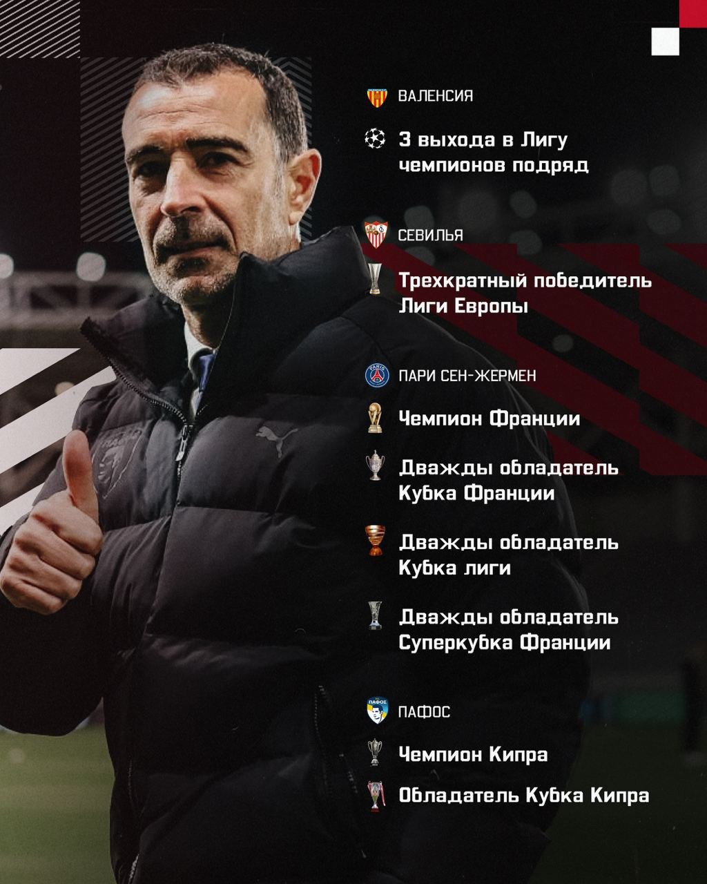 Помните Карседо? Он уже работал в «Спартаке» в 2012 году, будучи ассистентом Унаи Эмери. Вместе они выигрывали чемпионат Франции с «ПСЖ» и трижды Лигу Европы с «Севильей»!