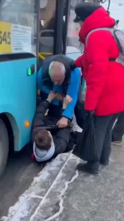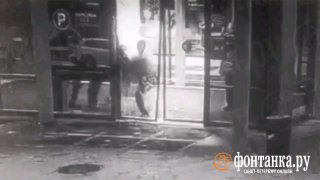Конфликт начинается в фойе гипермаркета, а затем в буквальном смысле вываливается на улицу. Вместе с осколками двери. Мужчина в форме охраны машет кулаками и плотно прижимает к земле парня (больше похож на подростка). Со стороны может казаться, что охранник душит оппонента.