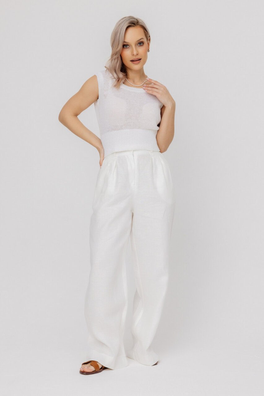 Широкие брюки из мягкой струящейся ткани с легкой полупрозрачностью — универсальная модель для повседневных и летних образов. А эта полупрозрачная футболка - настоящий тренд этого года! Изготовленная из легкой и дышащей ткани, она обеспечит вам комфорт в любой ситуации. Можно собрать комплект или носить отдельно.