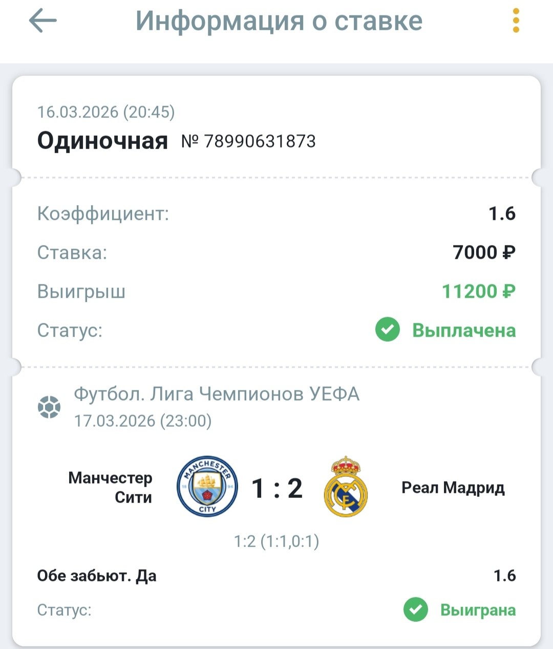 «Сити» и «Реал» забивали друг другу в Манчестере в 5 из последних 6 матчей. Хозяева отправили в их ворота 13 мячей в 5 встречах. При этом у самих наблюдаются серьезные проблемы с защитой: команда пропустила 3 гола в Мадриде и еще трижды — от двух аутсайдеров АПЛ. «Реал» в этом розыгрыше забивал в гостях всем, кроме «Ливерпуля» (0:1), а в Манчестере не пропустил от «горожан» лишь однажды за 9 игр — ровно 10 лет назад. Статистика очных встреч и текущая форма обеих команд прямо подталкивают к ставке на обмен голами.
