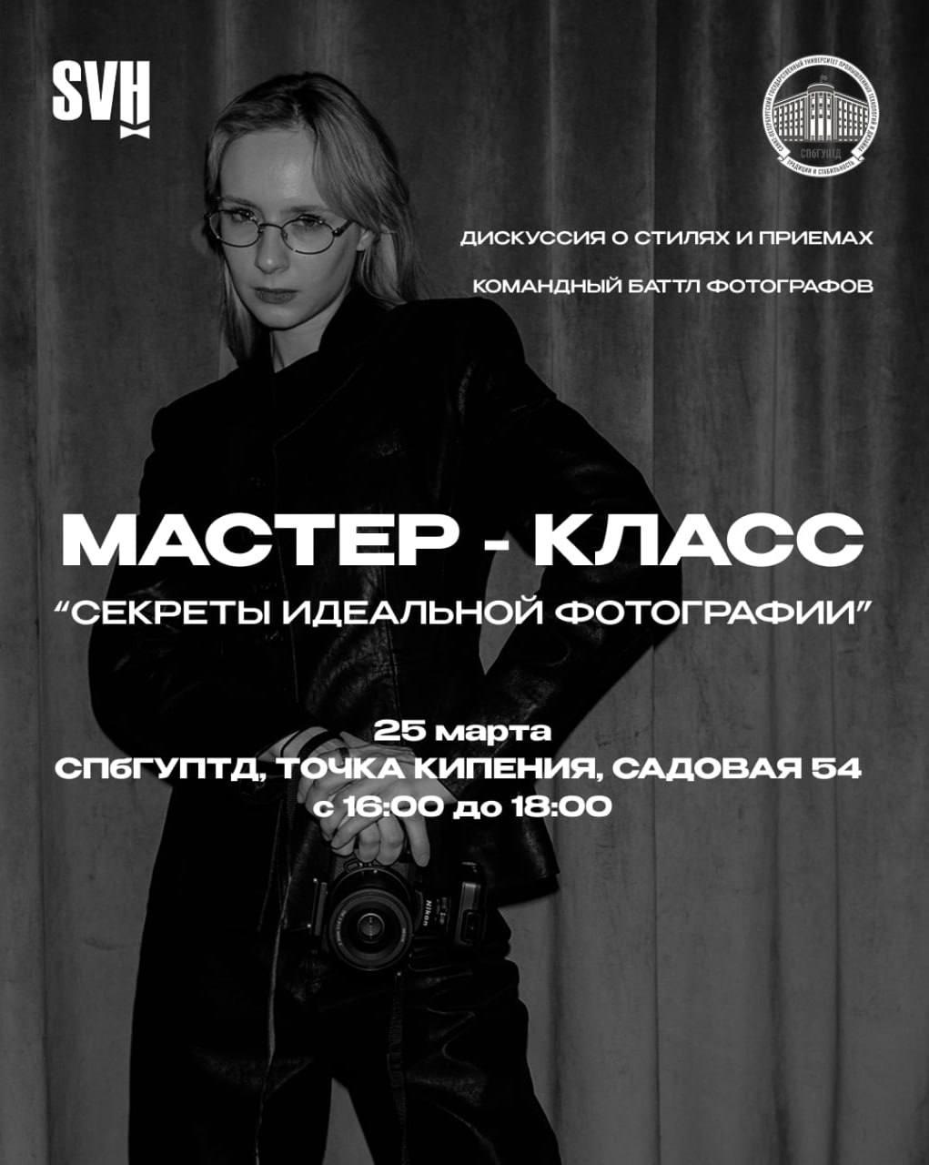 На мастер-классе разберём ключевые вещи, которые дают результат. Покажем, как видеть кадр, как работать со светом и раскроем секрет идеальной фотографии.