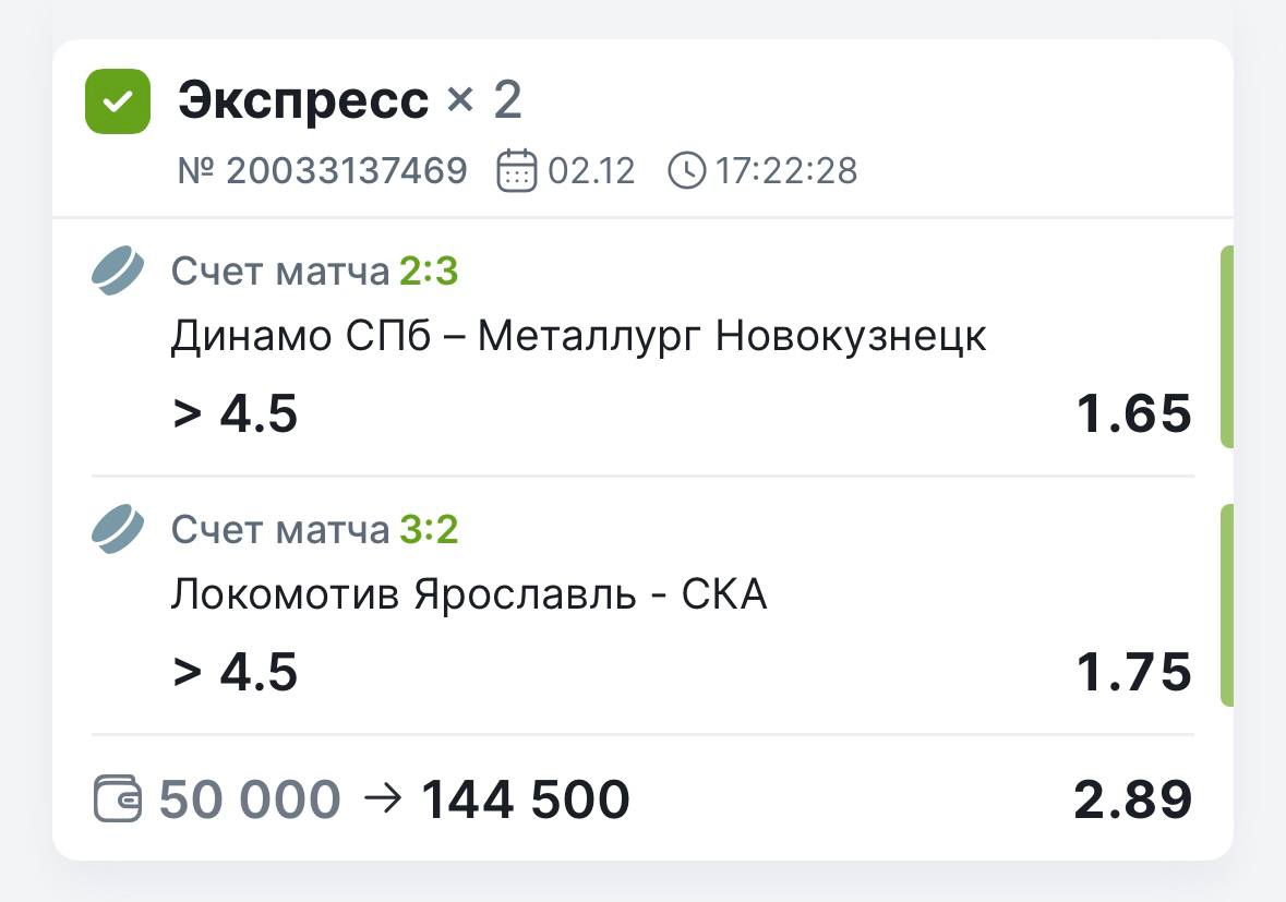 По КХЛ вчерашнему ситуация следующая, а именно победная ✅✅✅