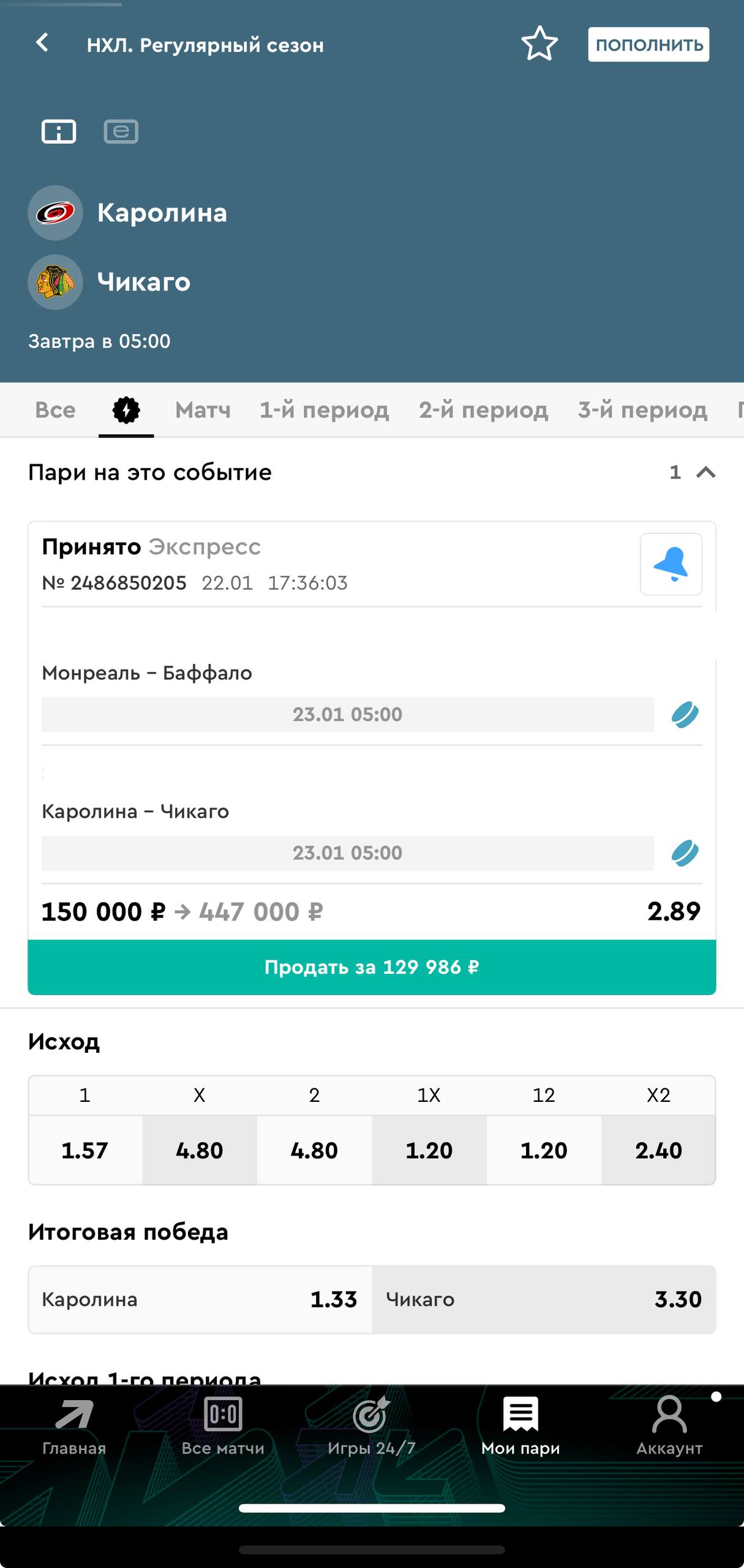 Отталкиваемся от хозяев, уверен Нижнекамск сегодня будет вести игру. Прекрасно помню очные встречи между командами в конце декабря, 0-2 и 1-3 тогда выиграл Нижнекамск оба матча, но счета совершенно не соответствуют игре, моментов было просто уйма и я реально удивлялся что столь мастеровитая и взрослая по меркам МХЛ команда как Реактор не может распечатать вратаря 2008 года с первым сезоном в МХЛ, но ладно, Молот дома те еще автобусники, на выезде это совершенно другая команда с средними цифрами в 2.95 забитых шайб и внимание 4.09 средних пропущенных за игру, а в нападении Нижнекамска уйма ребят которые переросли МХЛ, тот же Муиссу один из лучших бомбардиров лиги, Столяров и Гизятов, на двоих под 60 очков и это только первая тройка, еще есть Решетников с оптом в КХЛ, Сиразетдинов пока зеленый, но очень талантливый парень, Криволапов к слову тоже в КХЛ стабильно привлекается, Романов и Курбатов в третьей тройке тоже очень сильные для МХЛ ребята, короче говоря я смело могу ждать и четыре и пять шайб от хозяев сегодня, но иду именно общим тоталом, слишком много брака в своей зоне, заигрываются Реактор зачастую очень сильно и пускают много выходов 1в0, много контратак где до верного можно разыграть, а для Молота это хлеб на протяжении всей регулярки и такие моменты они реализовывать умеют. Жду перестрелку и матч на встречных курсах, никакого повтора игр в Перми здесь и быть не может.