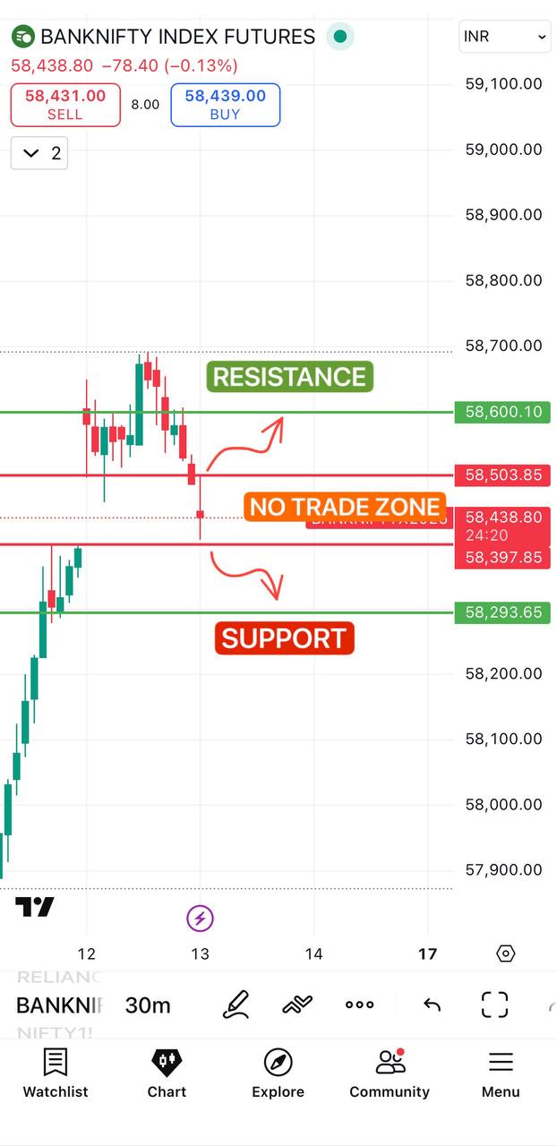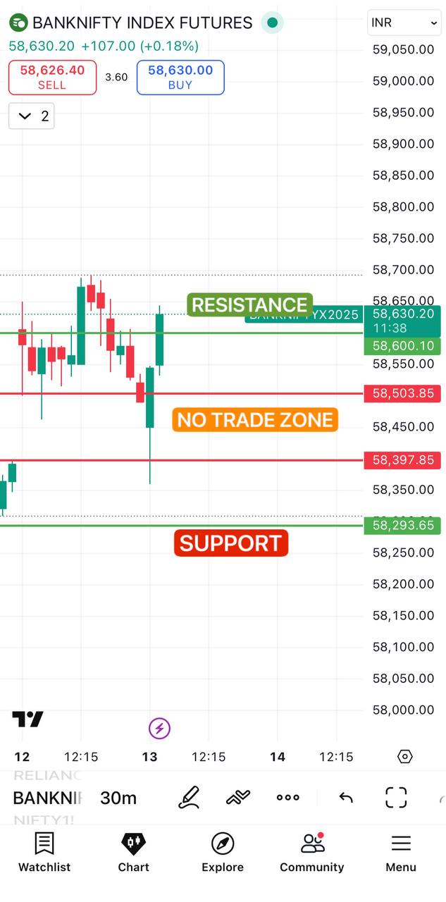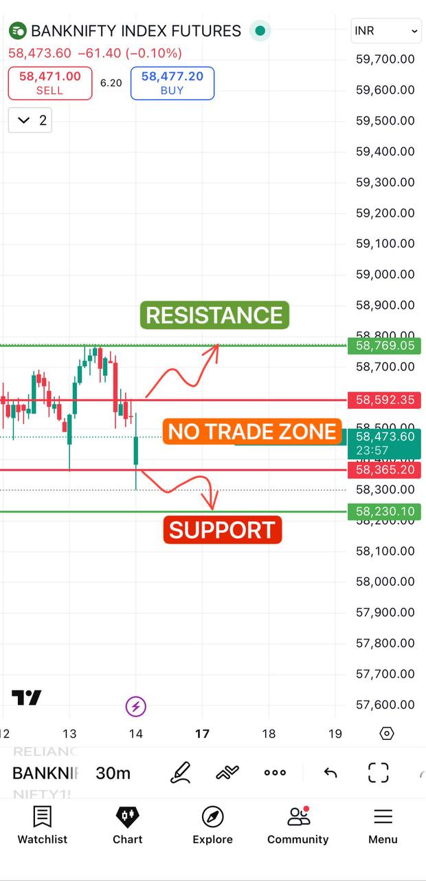 BANKNIFTY FUTURE 30 MINS TIMEFRAME ⏰ ✅ ABOVE 58592 LEVEL WE MAY SEE 58769 ✅ IF BREAK BELOW 58365 THEN 58230 POSSIBLE